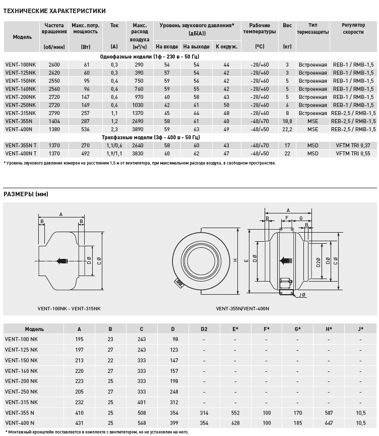 Вентиляторы комплектуются клемной коробкой и монтажным кронштейном.