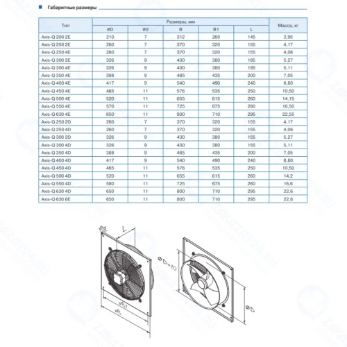 2-х или 4-полюсные асинхронные двигатели с внешним ротором и крыльчаткой осевого типа. Исполнение двигателя однофазное (E) или трехфазное (D). Двигатель оснащен шариковыми подшипниками для большего срока эксплуатации. Снабжен встроенной тепловой защитой с автоматическим перезапуском.