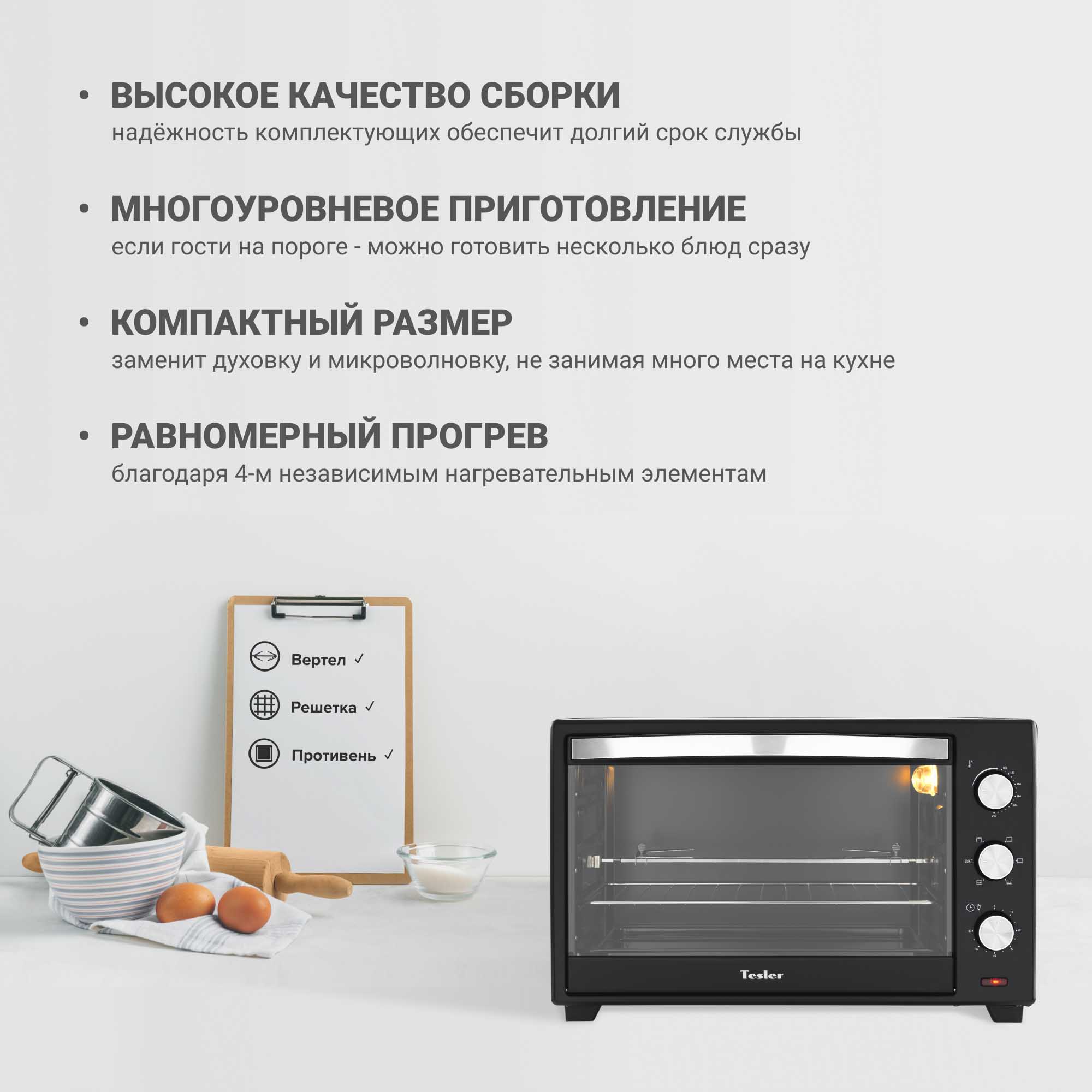 Мини-печь TESLER EOG-4800 - современная кухонная техника, с помощью которой можно бысто приготовить вкусную и разнообразную еду.