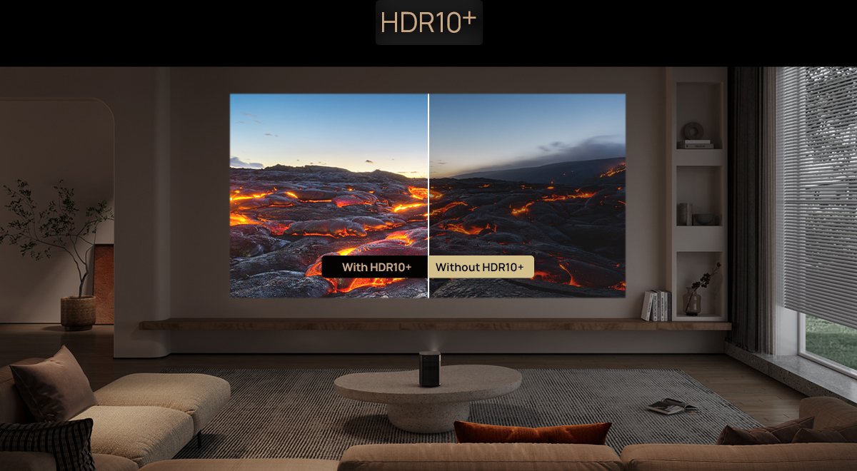 HDR10+ содержит динамические метаданные, обеспечивающие высокую контрастность и феноменальную глубину цвета от кадра к кадру. Наслаждайтесь реалистично определенными белыми и темными оттенками, идеально подходящими для романтических пляжных вечеров за просмотром фильмов.