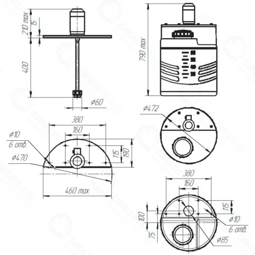 Мешалка устанавливается на емкость с использованием специальной усилительной прослойки (суппорта) - для усиления площадки емкости, что исключает ее прогиб под весом мешалки.
