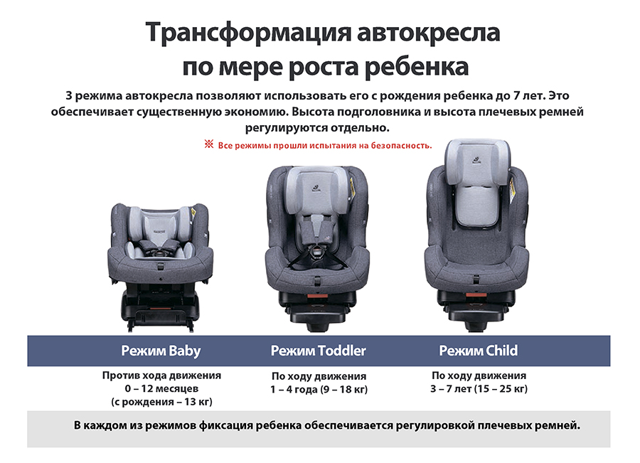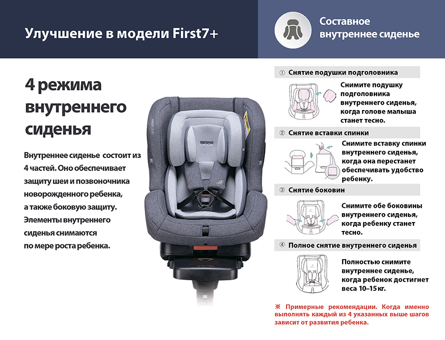 - 4 режима внутреннего сиденья (элементы внутреннего сиденья вынимаются по мере роста ребенка);