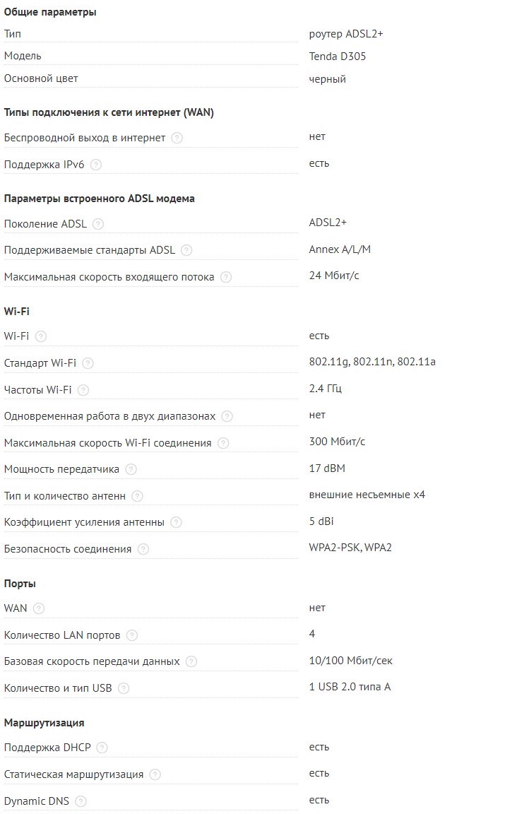 Tenda D305 – универсальное решение, сочетающее функции 300 Мбит/с беспроводного маршрутизатора и ADSL2+ модема. Четыре мощные всенаправленные антенны с коэффициентом усиления 5дБ обеспечивают стабильный Wi-Fi сигнал в любой точке большого дома.