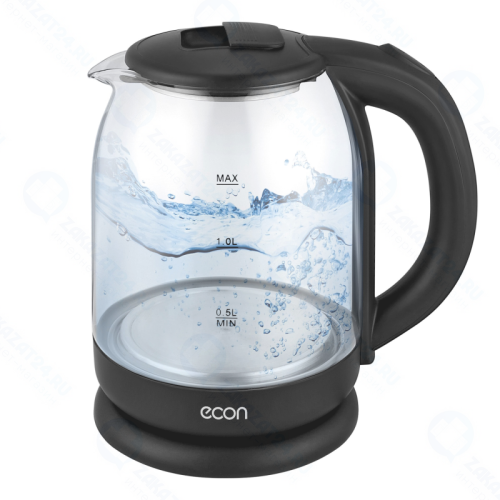 Электрический чайник из жаропрочного стекла быстро нагреет воду и сам отключится после закипания. Ёмкости чайника хватит, чтобы согреть воду для всех членов семьи или небольшого офиса.