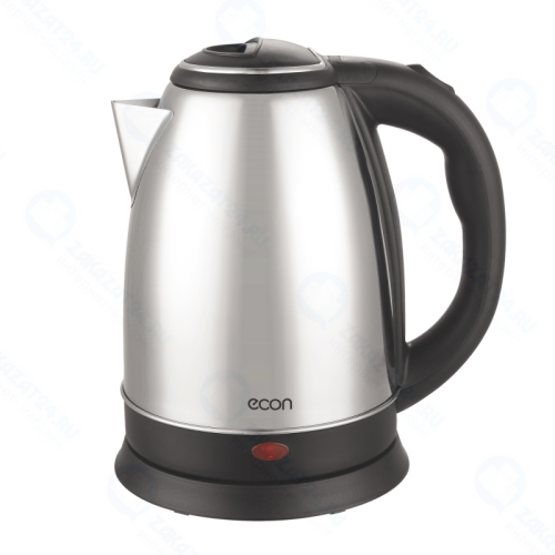 Электрический чайник с корпусом из нержавеющей стали и дисковым нагревательным элементом. Подставка позволяет установить на неё чайник с любой стороны или развернуть его вокруг своей оси на 360⁰.