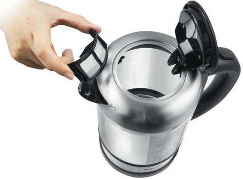 Не правда ли, здорово за считаные секунды вскипятить воду и без лишних усилий очистить чайник? Плоский и удобный в очистке нагревательный элемент позволяет быстро вскипятить воду. Благодаря моющемуся фильтру от накипи вода становится чистой, а напитки — без частиц известкового осадка.