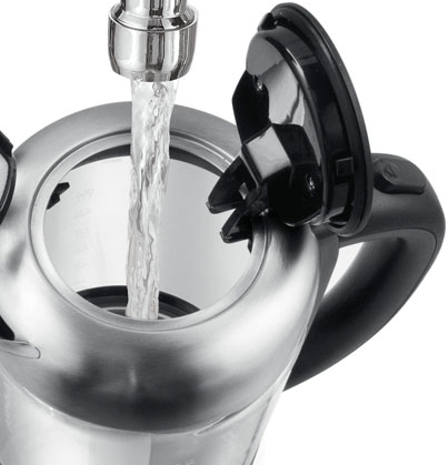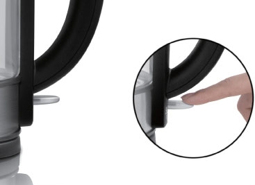 Откидная крышка с кнопкой для удобного наполнения и очистки чайника исключает контакт с паром.