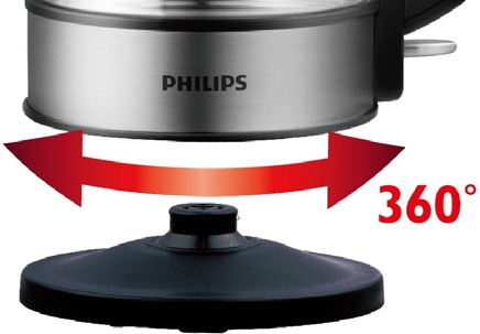 Чайник Philips HD 9342 обладает объемом 1,5 л, которого достаточно, чтобы организовать чаепитие для шести пользователей. Корпус модели изготовлен из высококачественного экологически чистого прочного стекла. Яркая индикация уровня наполнения и активации проинформирует о работе устройства. Для удобства применения сетевой шнур можно хранить в специальном отделении нижней части подставки.