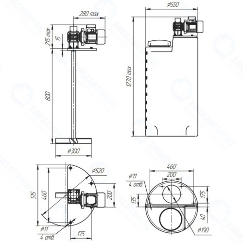 Мешалка специально подобрана для дозировочной емкости 200 литров с учетом габаритов и конструктивных особенностей емкости. Для установки мешалки вырезаны все необходимые отверстия в емкости, вам остается только прикрутить крепления мешалки к емкости. Емкость и мешалка транспортируются отдельно друг от друга в целях сохранности. Вам не нужно ломать голову над установкой мешалки. Мы обо всем позаботились!