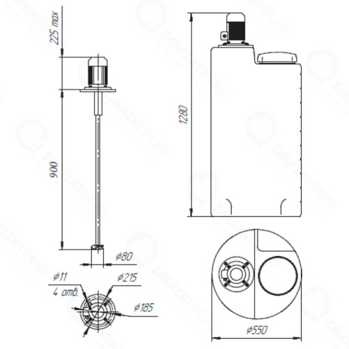 Мешалка специально подобрана для емкости дозировочной 200 литров с учетом габаритов и конструктивных особенностей емкости. Для установки мешалки вырезаны все необходимые отверстия в емкости, вам остается только прикрутить крепления мешалки к емкости. Емкость и мешалка транспортируются отдельно друг от друга в целях сохранности. Вам не нужно ломать голову над установкой мешалки. Мы обо всем позаботились!