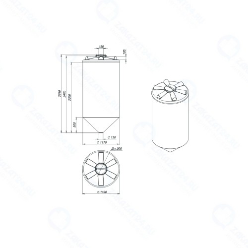 Емкость ФМ объемом 2000 литров – крупногабаритный цилиндрический резервуар с конусным дном, обеспечивающим дозированную подачу и полный слив хранящихся в баке веществ.