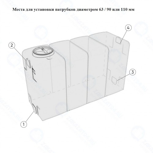 Емкость KR 4000 имеет 4 площадки для установки патрубков.