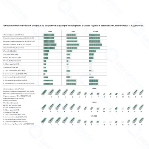 Габариты емкости KR 4000 специально разработаны для транспортировки в кузове грузовых автомобилей, контейнерах и ж/д вагонах