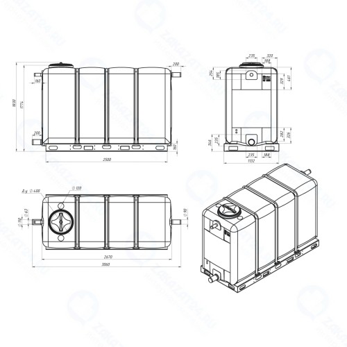емкость и патрубки производятся методом ротационного формования, который обеспечивает бак цельнолитым корпусом, на 100% защищенный от протечек