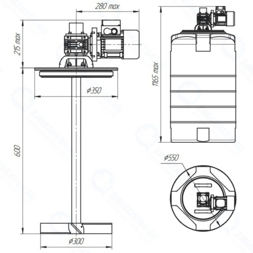 Мешалка специально подобрана для емкости Т 200 с учетом габаритов и конструктивных особенностей емкости. Емкость Т 200 литров в обрешетке поставляется с уже установленной на крышку емкости мешалкой. Вам остается только вкрутить мешалку в емкость. Емкость и мешалка транспортируются отдельно друг от друга в целях сохранности. Вам не нужно ломать голову над установкой мешалки. Мы обо всем позаботились!