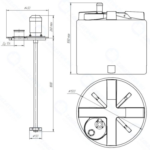 Мешалки весом до 25 кг устанавливаются непосредственно на крышку или ребра емкости. Крышка также выполнена из композитного материала.