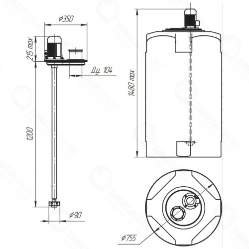 Турбинные мешалки весом более 25кг необходимо устанавливать на металлическую опору, чтобы исключить нагрузку на емкость. Металлическая конструкция изготавливается индивидуально под каждую емкость. Чертежи согласовываются с заказчиком после внесения предоплаты за поставку.