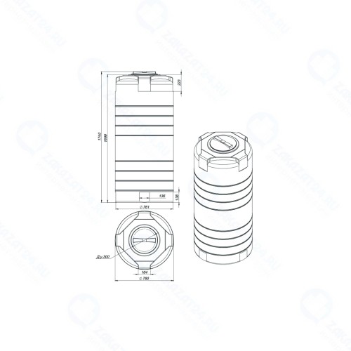 Вертикальная цилиндрическая бочка объемом 750 литров имеет максимально устойчивую конструкцию и усилена специальными горизонтальными ребрами жесткости.