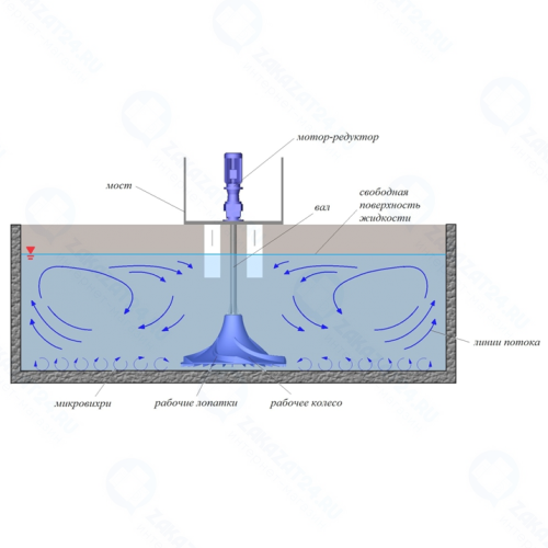 Мешалки предназначены для перемешивания жидкости с максимальной плотностью 1,3 г/см, динамической вязкостью жидкой фазы ‐ 1 Ра/сек. Данный тип мешалок тихоходный.
