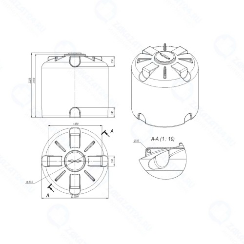 Диаметр горловины емкости составляет 535 мм, диаметр крышки 620мм.