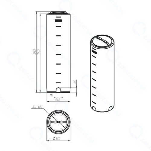 Емкость VD объемом 400 литров – высокий цилиндрический бак, который позволяет хранить большой объем жидкости в условиях максимально ограниченного пространства. Небольшой диаметр емкости облегчает не только транспортировку в опорожненном состоянии, но и упрощает монтаж, так как емкость проходит даже в узкие дверные проемы. Конструкция VD 400 устойчива и не требует дополнительной фиксации во время эксплуатации.