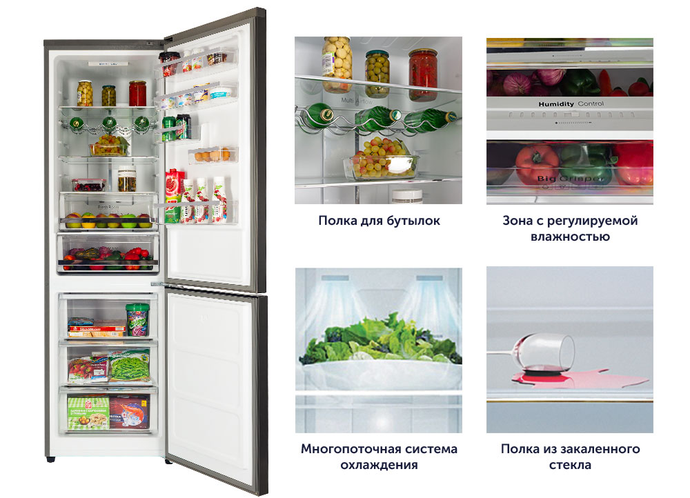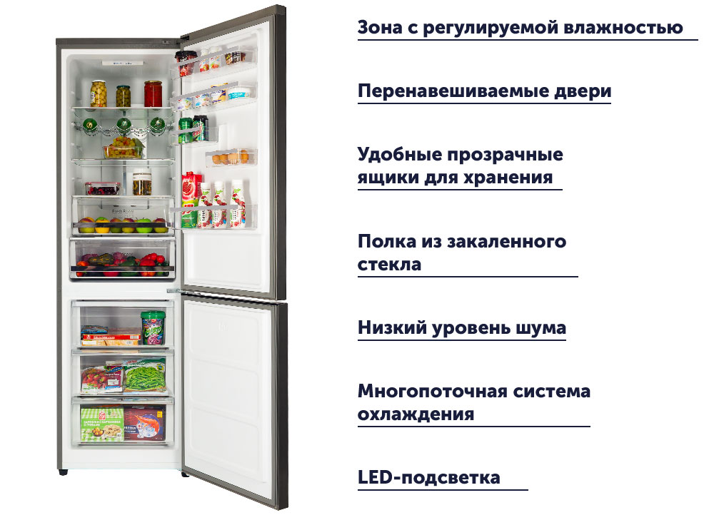 Цвет фасада темная нержавеющая сталь - украсит пространство, а богатый набор функций позволит позаботиться о вашихпродуктах. Многопоточная система охлаждения отвечает за продление свежести пищи, LED освещение обеспечит наилучшую видимость каждой зоны холодильного отделения, а технология No Frost устраняет необходимость разморозки. Удобства холодильникам HIBERG придают перенавешиваемые двери и сенсорный дисплей, который позволяет регулировать температуру холодильной и морозильной камер с точностью до 1◦ С.