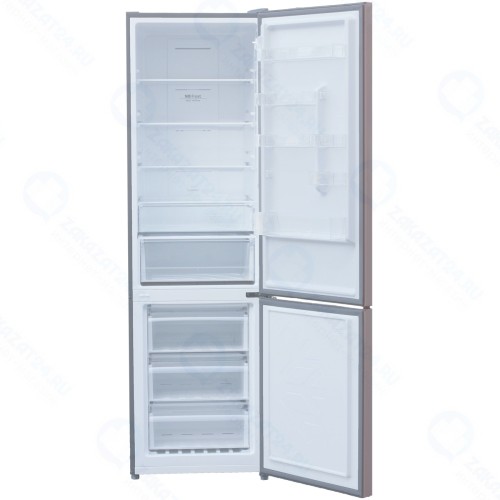 Двухкамерный холодильник Kenwood KBM-2003NFDBE оснащен морозильным отделением, расположенным в нижней части корпуса. Хранить множество продуктов в охлажденном и замороженном виде позволяет объем устройства 351 л. За счет регулирования влажности в отделении Fresh продукты остаются свежими продолжительное время. Благодаря технологии No Frost разморозка двух камер холодильника происходит автоматически. Основное отделение освещается комфортными для глаз LED-лампами. Морозильная камера способна замораживать до 4,5 кг продуктов в сутки.
