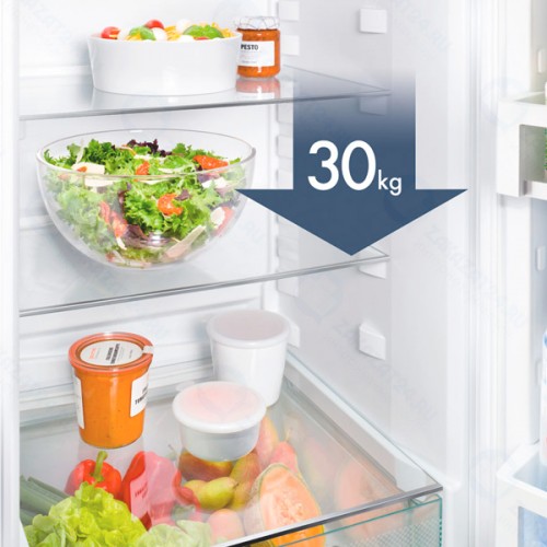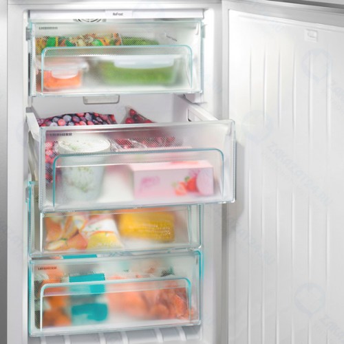 Морозильная камера оснащена выдвижными ящиками для хранения мяса, рыбы, птицы, полуфабрикатов и овощных заготовок. Система No Frost исключает образование наледи и конденсата на внутренней поверхности. Благодаря этому устройство не нужно регулярно оттаивать вручную, что создает комфортные условия для эксплуатации. Холодильник Liebherr CNel 4713-20 имеет кнопочную панель управления с дисплеем. Сигнализация оповестит пользователя о внезапном повышении температуры в отделениях и при неплотно закрытой дверце.