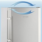 В стандартном исполнении на холодильники устанавливается дверь, которая открывается слева направо. При этом для более удобного открывания и адаптации к условиям в помещении дверь можно перенавесить и тем самым изменить сторону ее открывания.