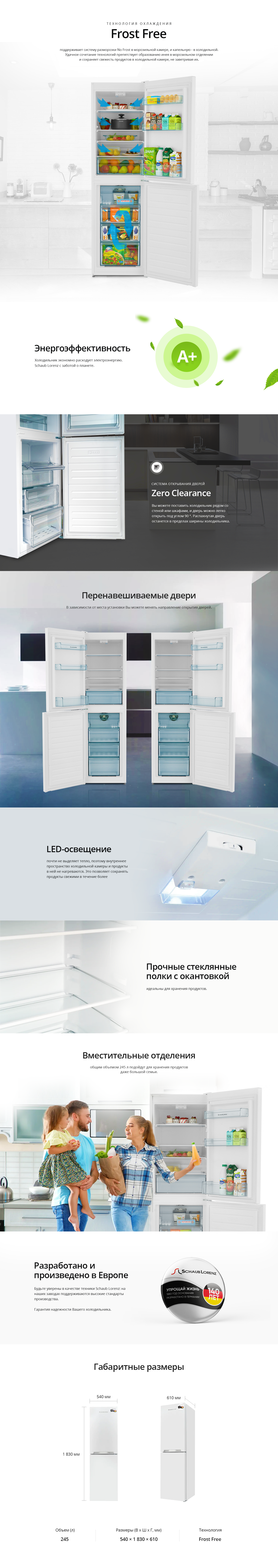 Функциональный холодильник SLU S262C4M с двумя камерами включает в себя 4 прочных полки из стекла, ящик для овощей, 3 полочки на двери холодильной камеры, а также 4 ящика в морозильной камере. Холодильник имеет низкий уровень шума и оснащен системой «NO FROST», в морозильной камере, которая позволяет забыть о размораживании холодильника вручную. В холодильной камере предусмотрена капельная система разморозки.