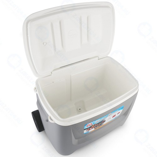 Изотермический контейнер Igloo 34124 оснащен удобными колесиками и ручкой, а на боковых частях имеются углубления, упрощающие переноску бокса. Вместимость контейнера составляет 56 литров. Изделие выполнено из экологически чистого и легко очищаемого материала. Корпус и крышка имеют термоизоляцию, надолго сохраняющую температуру внутри.