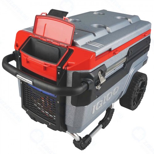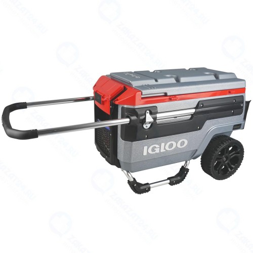 Универсальный изотермический контейнер Igloo 34230 подходит для транспортировки замороженных и охлажденных продуктов. Изделие оснащено удобными резиновыми колесиками, телескопической ручкой, подстаканниками, местом для размещения планшета и отсеком сухого хранения.