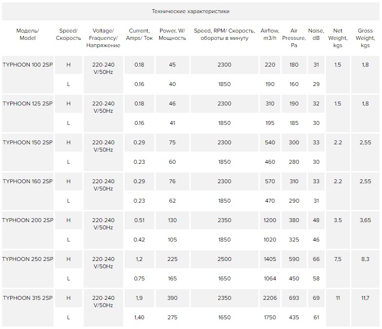 Серия вентиляторов TYPHOON – профессиональная техника, направленная на создание комфортных условий в помещениях, где необходима постоянная циркуляция воздуха и постоянная влажность. Отличительной чертой этой серии являются отдельные детали, выполненные из ABS-пластика, что позволяет технике не страдать от коррозии, они легко монтируются, снижается уровень шума. В вентиляторе установлены современные двигатели, имеющие два скоростных режима.
