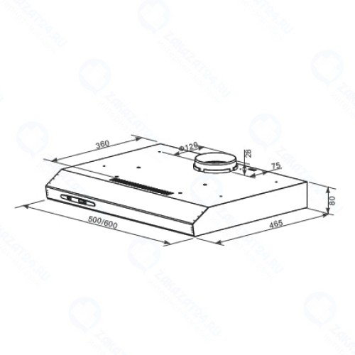 Полная потребляемая мощность мотора 77 Вт, максимальная производительность 420 м3/ч. Данная вытяжка может работать на кухне площадью до 12 м2.Уровень шума