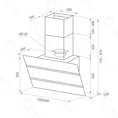- Наклонная вытяжка с настенным креплением