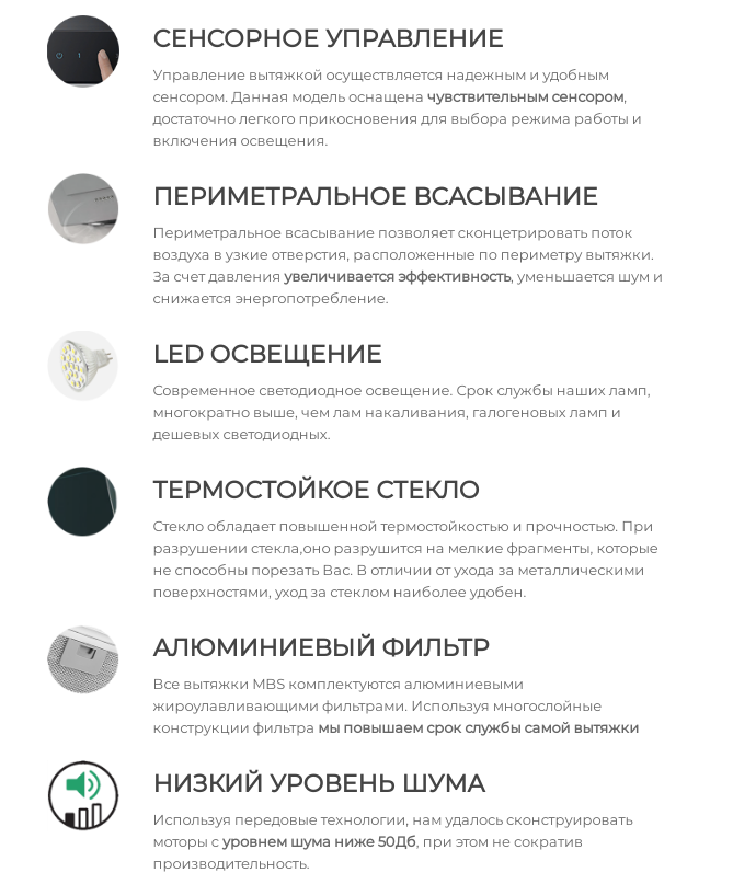 Современная малошумная кухонная вытяжка TREVESIA 160 GLASS BLACK не только эффективно очистит воздух на вашей кухне, но и, безусловно, очень украсит ее своим стильным дизайном. Вытяжку можно подключить как к воздуховоду, так и использовать в режиме рециркуляции. Фасад вытяжки выполнен из прочного закаленного стекла черного цвета, а для того, чтобы использование модели TREVESIA 160 GLASS BLACK было комфортным для любого члена вашей семьи, вытяжка комплектуется дистанционным пультом управления. Вся кухонная техника швейцарского бренда MBS соответствует всем современным европейским стандартам, а гарантия производителя составляет 3 года.