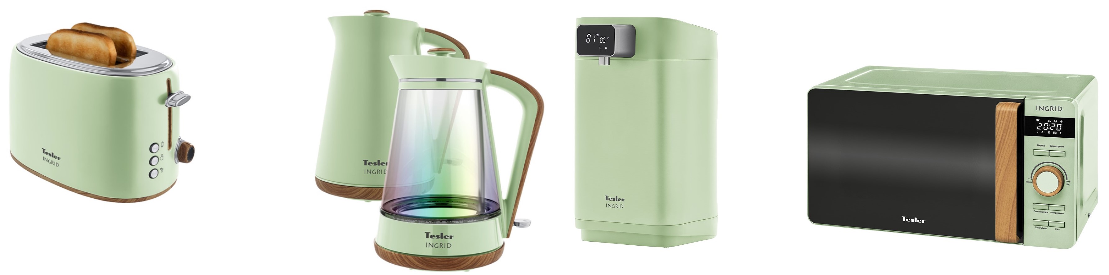 Благодаря изящным линиям корпуса, зеркальной дверце, декоративным вставкам с приятным на ощупь тактильным покрытием Comfort Touch и высокому уровню автоматизации СВЧ INGRID ME-2044 не имеет аналогов среди подобных устройств на российском рынке. Уникальный стиль линейки INGRID универсален и прекрасно подойдет большинству современных интерьеров. На выбор пользователей у микроволновой печи INGRID 3 цвета: белый, серый и нежно-зелёный. Внутреннее покрытие камеры Crystal Clear позволяет быстро и легко избавится от загрязнений внутри СВЧ-печи, а декоративные поверхности получили дополнительную защиту от пятен и жира. Основательность во всём - это Tesler INGRID.
