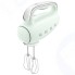 Корпус миксера Smeg HMF01PGEU выполнен из прочного ABS-пластика, а погружная часть — из нержавеющей стали. В зависимости от продуктов можно выбирать соответствующий тип насадок: плоские, венчики или крюки. Их отсоединение осуществляется одним нажатием на рычаг. В функционале доступно девять скоростей вращения, а также турборежим.