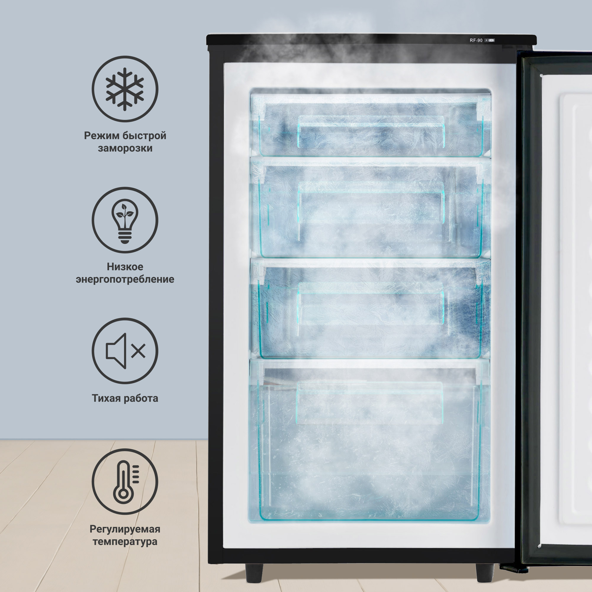 Морозильная камера Tesler RF-90 станет отличным дополнением к вашему холодильнику. При том, что данная модель может поместиться под кухонную столешницу, она обладает внушительным полезным объемом – 80 литров.