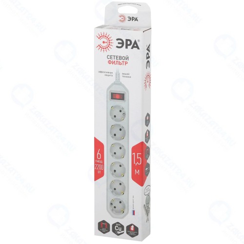 Купите "Сетевой фильтр ЭРА USF-6es-1,5m-W" в интернет-магазине Заказать24.ру (https://zakazat24.ru/) — это практичная и полезная покупка.