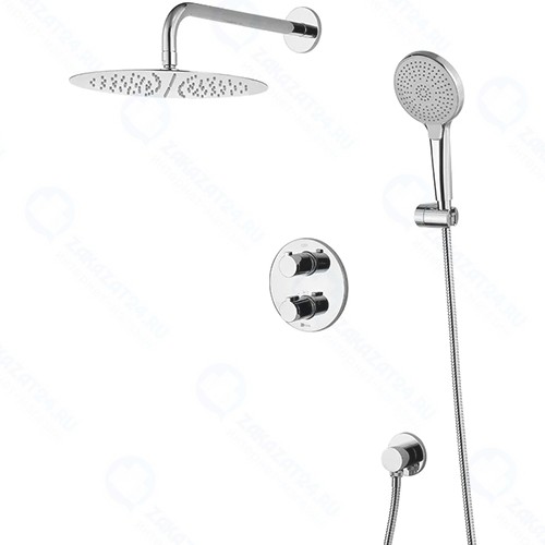 В комплект входит большая верхняя поворотная лейка «Тропический дождь» диаметром 300 мм. Угол ее наклона можно настроить по своему вкусу. А ручная душевая лейка диаметром 120 мм обладает тремя режимами функционирования и четырехпозиционным картриджным переключателем с углом поворота 360 градусов. Она фиксируется на настенном поворотном креплении. Душевой шланг способен растягиваться до 1,5-2 метров и имеет защиту от перекручивания. Сердцем смесителя стал термостатический картридж Sedal с гелевым термоэлементом и фиксатором. Благодаря ему пользоваться системой безопасно даже ребенку. Поток воды будет всегда точно заданной температуры.