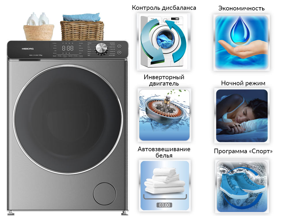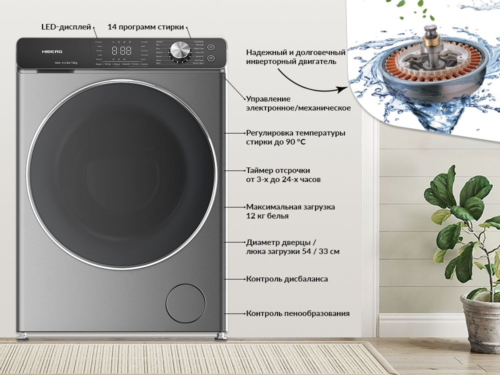 HIBERG считает, что о качестве стирки должна заботиться техника, а не ее хозяин. Стиральные машины HIBERG максимально надежны, функциональны, оснащены множеством программ и самыми передовыми технологическими достижениями. Специальные алгоритмы потребления воды и электроэнергии обеспечивают экономию семейного бюджета без ущерба для качества стирки. Инверторные стиральные машины HIBERG стирают так качественно и бережно, что ваши вещи всегда будут как новые!