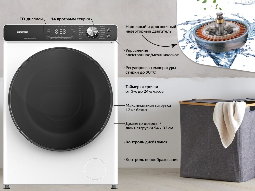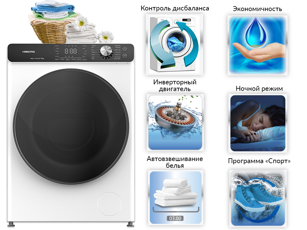 HIBERG считает, что о качестве стирки должна заботиться техника, а не ее хозяин. Стиральные машины HIBERG максимально надежны, функциональны, оснащены множеством программ и самыми передовыми технологическими достижениями. Специальные алгоритмы потребления воды и электроэнергии обеспечивают экономию семейного бюджета без ущерба для качества стирки. Инверторные стиральные машины HIBERG стирают так качественно и бережно, что ваши вещи всегда будут как новые!