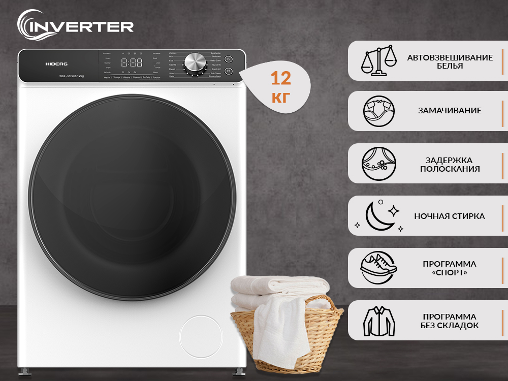 Инверторные стиральные машины HIBERG стирают так качественно и бережно, что ваши вещи всегда будут как новые! Инверторные технологии это преимущество в тишине стирки, долговечности мотора и ресурсосбережении.
