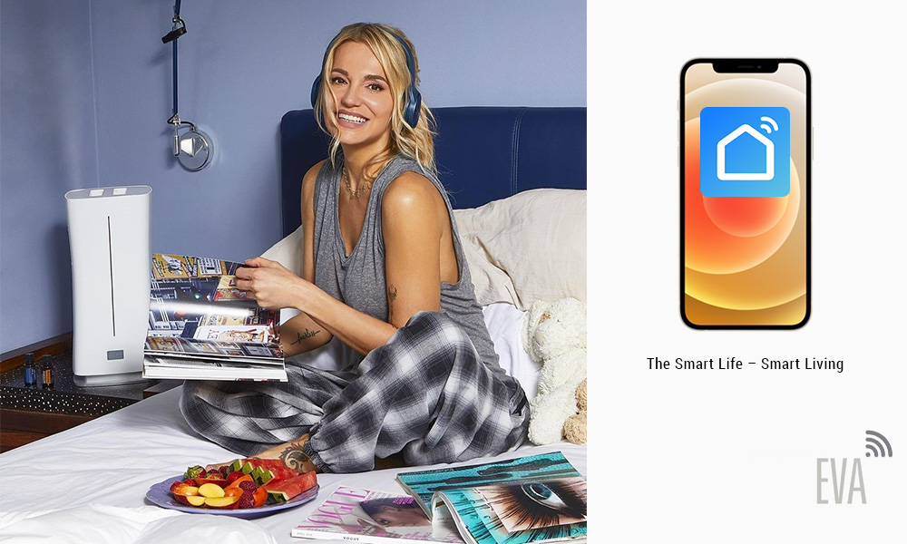 Контролируйте микроклимат в Вашем доме из офиса, магазина, с прогулки, из соседней комнаты! Как вариант, Вы можете включить Eva до Вашего прихода, чтобы вернуться в помещение с идеальной влажностью!