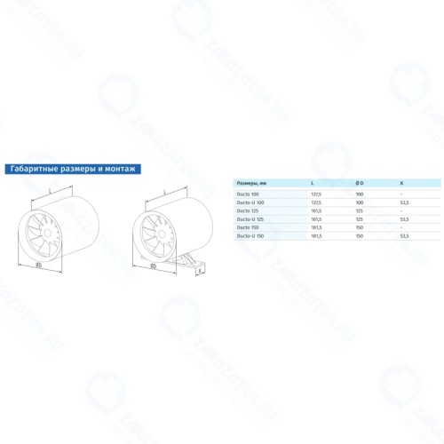 - При монтаже с гибкими воздуховодами крепится с помощью хомутов.Монтажный кронштейн обеспечивает установку вентилятора на горизонтальную или вертикальную плоскую поверхность (модели Ducto-U).