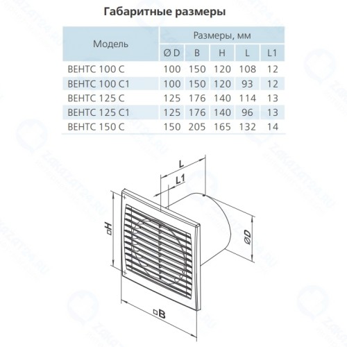 С К - Вентилятор оборудован обратным клапаном для предотвращения обратной тяги.